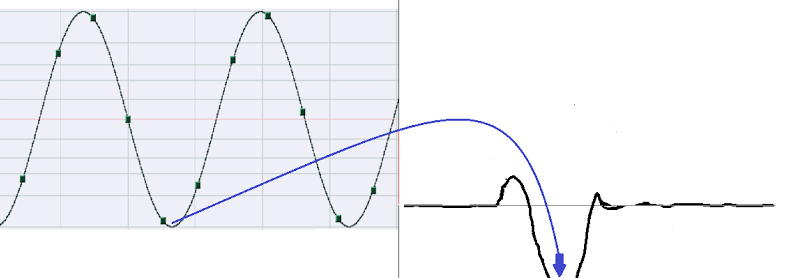 So what do we do when we create a composite signal? Instead of working with the left and right channel, we're going to work with the L+R (just the mono sound) and L-R (the stereo sound, the difference between the two channels) signals. You can see what those signals look like on the right.